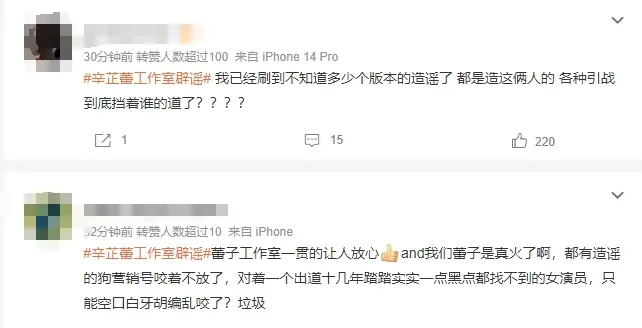 還有網(wǎng)友表示:“我已經(jīng)刷到不知道多少個版本的造謠了,都是造這倆人的,各種引戰(zhàn),到底擋著誰的道了?”