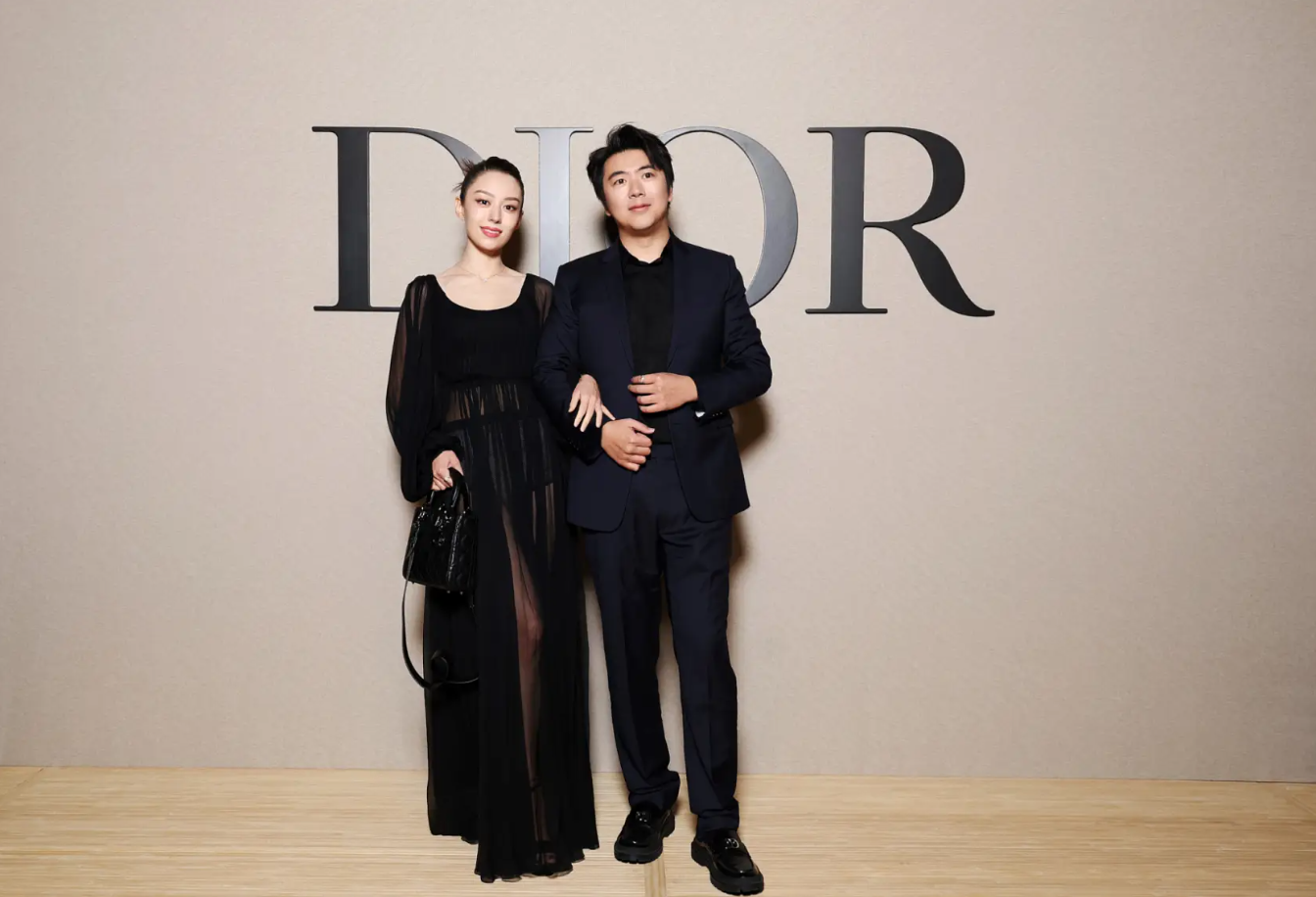 2024年2月27日,法國巴黎,2024秋冬巴黎時裝周,郎朗與妻子吉娜·愛麗絲出席Dior品牌觀秀。