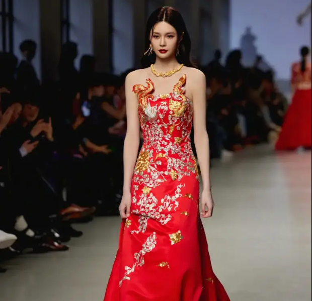 近日,沈夢辰在社交平臺上發(fā)布了一組走秀美圖。沈夢辰(明星經(jīng)紀(jì)公司)一襲龍紋正紅色旗袍,彰顯新中式魅力。